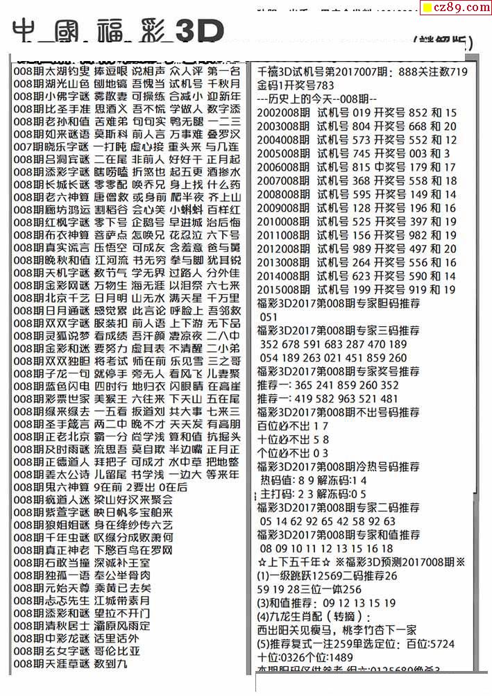 杀手+鑫马快报+字迷汇总26年008期3d图谜-【3d试机号查询_今日3d试机号查询_福彩3d试机号今天_3d试机号口诀_3d试机号每日快报】-福彩网