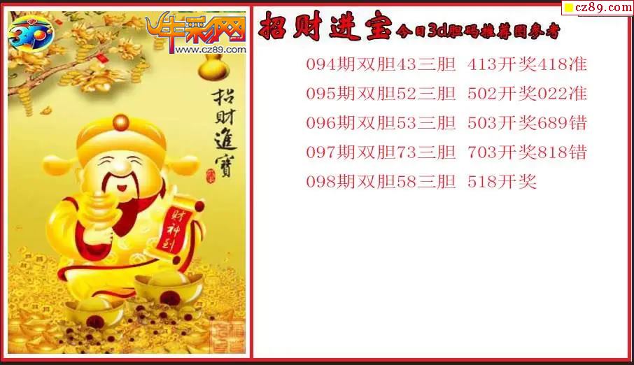 > 26年098期3d 招财进宝今日胆码推荐图参考