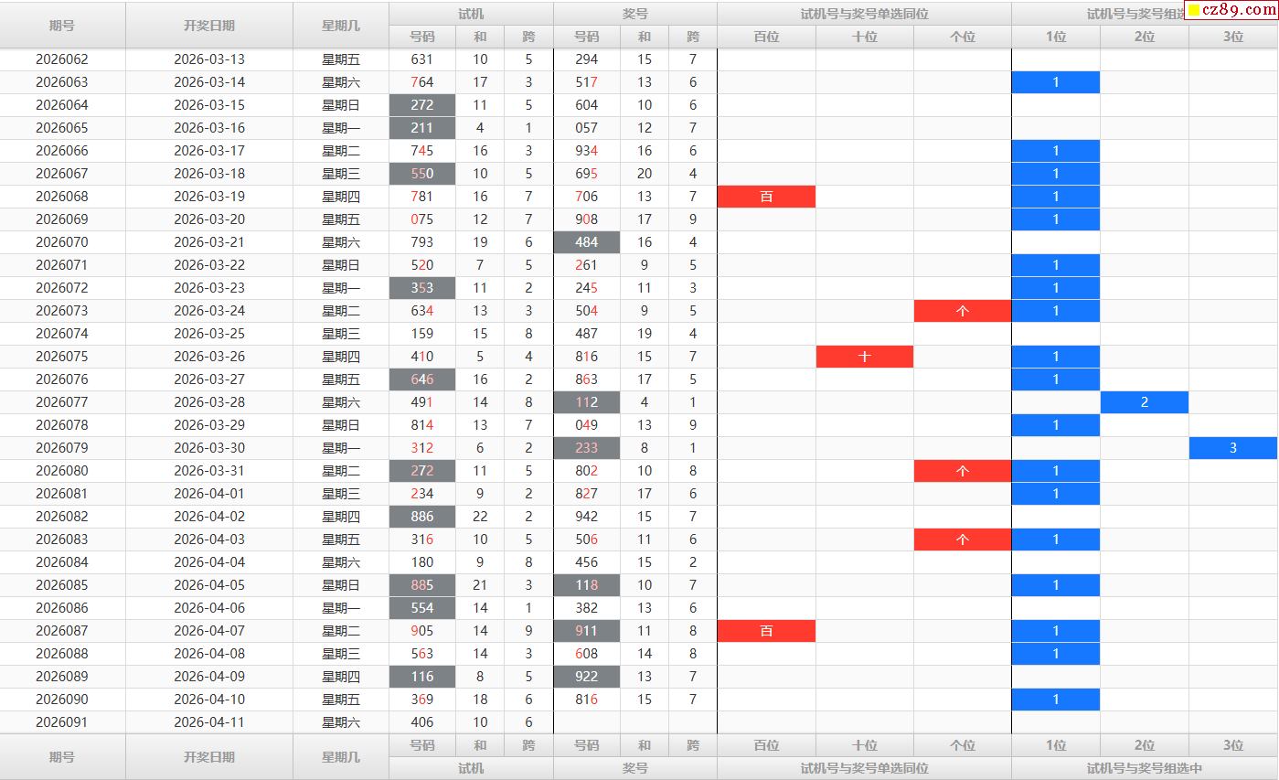 首页 > 福彩3D预测 > 26年091期福彩3D试机号走势图表分析